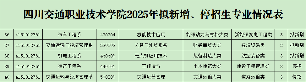 表2 安博电子官方网站2025年拟新增、停招生专业情况表